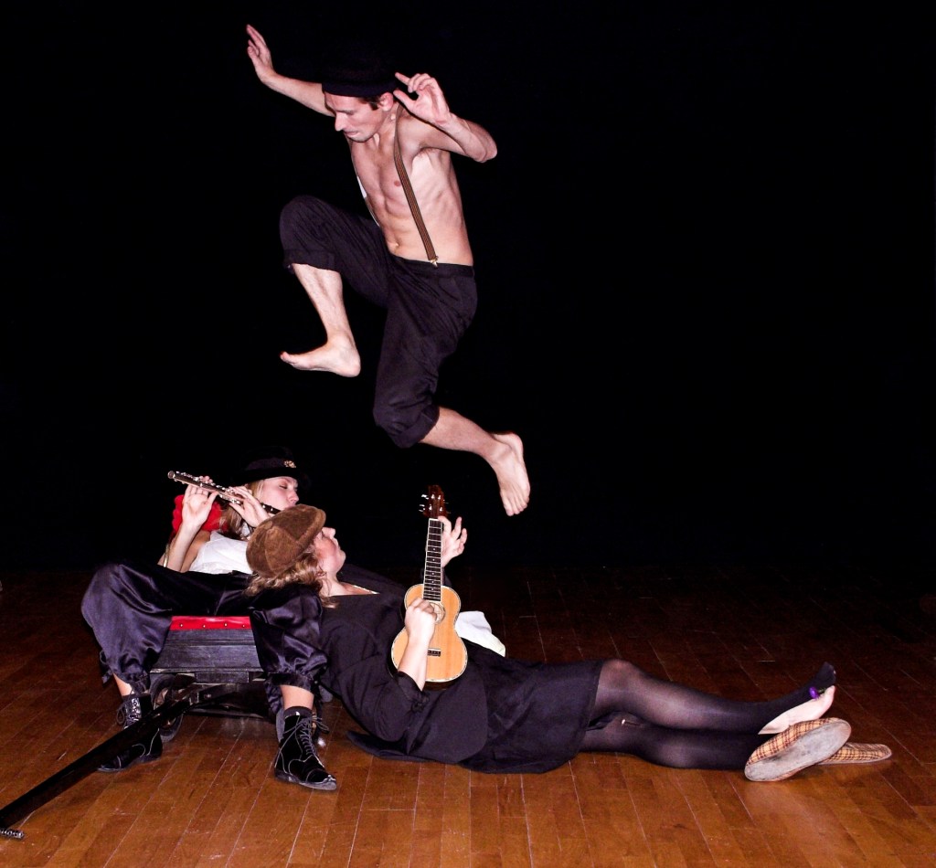 A trio of vagabonds travels through the world, in their search of adventures. Performance by and with Kabaret Wagon.