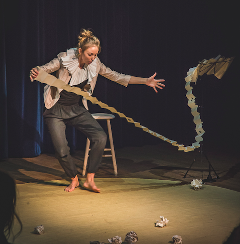 Billeder fra vandreforestillingen Silketråd, Silkeborg, hvor scenen som kørte i loop, kombineredes med korsatser fra Rossini’s opera Il Viaggio a Reims.