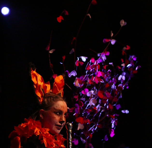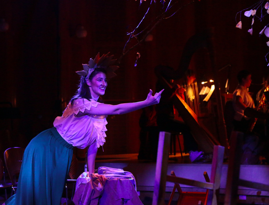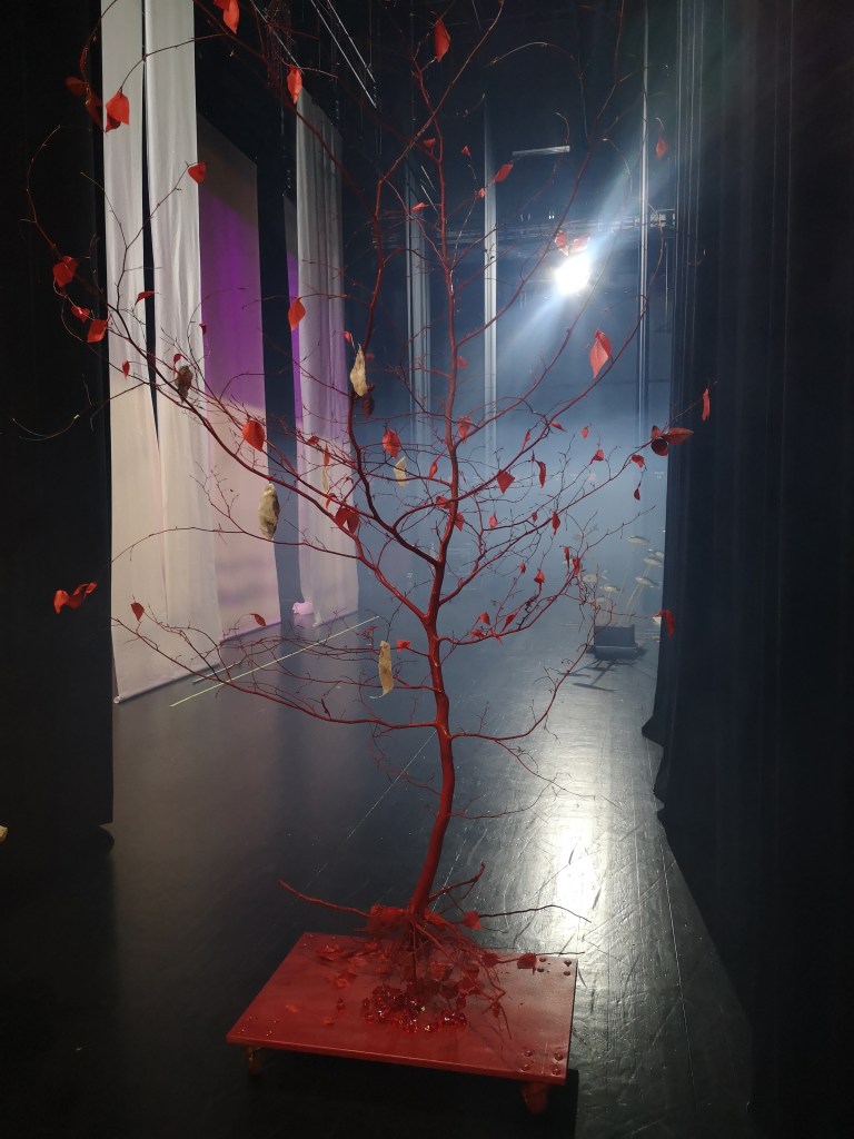 Nedenfor billeder fra operaen: Den fiffige lille ræv, Det Kongelige Danske Musikkonservatorium, Købehavn, 2023. Scenografi og kostumedesign: Karin Sjöholm. Materialer: træer, rødder og foerstof til blade og kostumer. Foerstof bruges for at skabe effekt af genskin og skyggeeffekter af blade og grene på gulvet. Da publikum var placeret overfor hinanden, var det afgørende at scenografien havde en mobil lethed og visuel transparenthed. Træernes mange hulrum gør det muligt for publikum at se alle sangere. Medvirkende: studerende