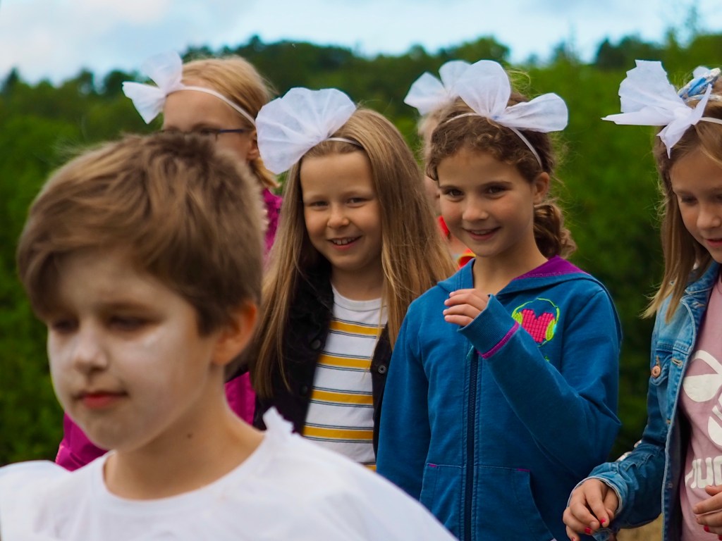 Forestillingen var resultatet af en uges laboratorium i september 2020, i den smukke natur der omgiver Gjern skole i Silkeborg. Karin instruerede forestillingen og underviste børnene i samarbejde med skole og biolog.